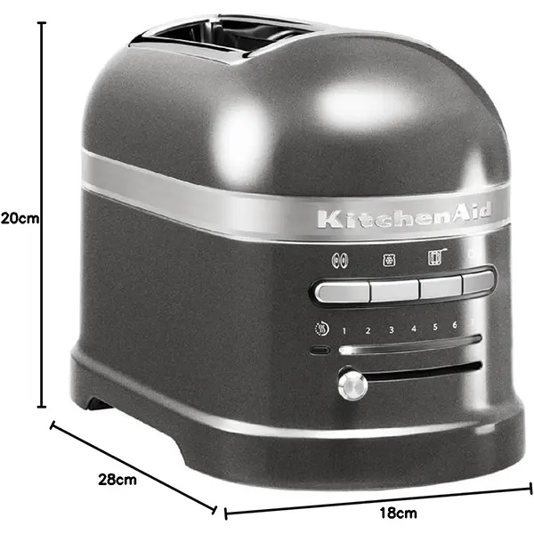 KitchenAid 5KMT2204EMS Argento Medaglia Tostapane 2 Fette, 7 diversi gradi di doratura