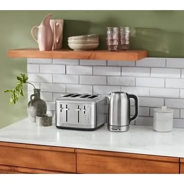 Con il suo design in metallo resistente, il tostapane fa figura in cucina.
