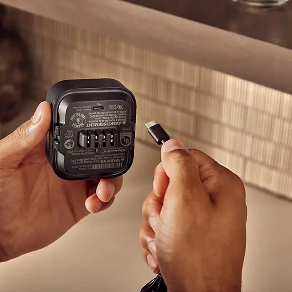 Il cavo di ricarica è lungo 91,44 cm e abbinabile a un adattatore di alimentazione USB-C compatibile** (non incluso) per ricaricare da una presa.